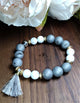 Although glaciers are melting all over the world, this Glacier Ice will never melt away. The wonderful shades of blue come from 10mm Natural Apatite stones and 8mm Synthetic Turquoise stones. This is a great spring bracelet when you need just a bit of blue to THAT perfect outfit.